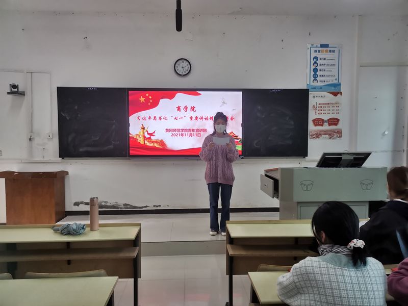 第二场宣讲由青年宣讲团成员张勤围绕赓续伟大建党精神展开宣讲。首先讲到了伟大建党精神的内涵:坚持真理、坚守理想,践行初心、担当使命,不怕牺牲、英勇斗争,对党忠诚、不负人民。伟大的建党精神也孕育了大别山精神,坐落在大别山脚下的我们更该发扬与传承。作为当代青年,应该做建党精神的传承者、践行者、奋斗者、担当者。