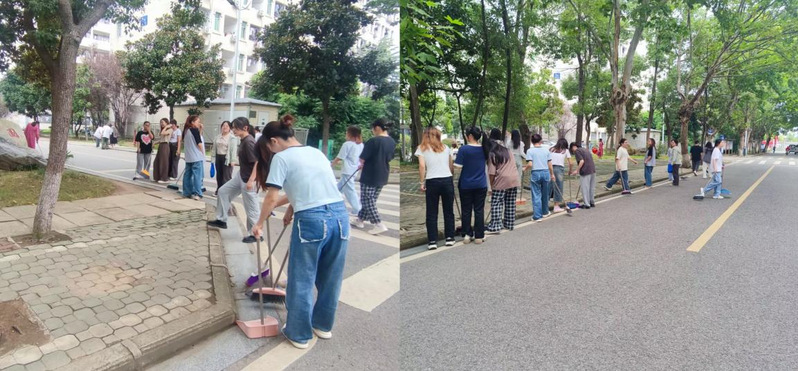 在组长带领,组员们拿上各自的劳动工具,马上投入到卫生清洁中。大家十分积极,分工协作,任务明确,同学们拿起手中的扫帚清扫道路中的垃圾。经过大家的共同努力,道路两旁焕然一新,即使刚扫完的地上又有新的落叶,但是也没有人抱怨,看着铺满落叶的地面逐渐变得干净,一切都井井有条十分整洁有序,看着自己的劳动成果大家脸上也都露出了欣慰的笑容。