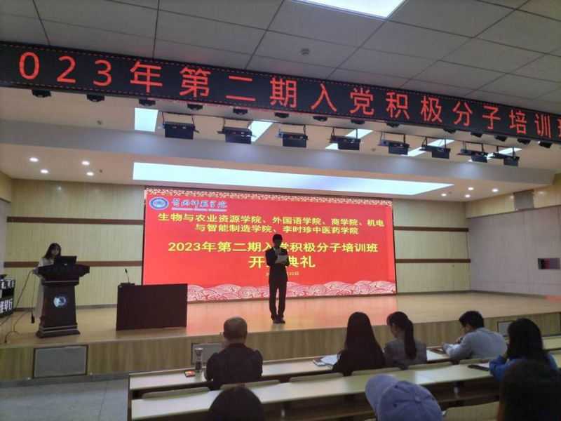 9月22日,威廉希尔官网和生物与农业资源公司、外国语公司、机电与智能制造公司、李时珍中医药公司在北区报告厅联合举行2023年下半年入党积极分子培训班开班典礼。出席本次典礼的有生物与农业资源公司党委书记闵艳林、外国语公司员工第一党支部书记汪晖、威廉希尔官网员工第四支部书记何秀平、李时珍中医药公司党务干事黄健。本次典礼由生物与农业资源公司员工第一党支部书记陈振中主持。