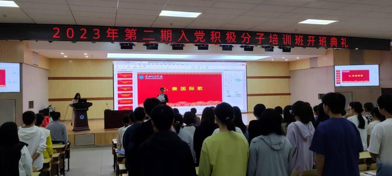第七项,全体起立,奏国际歌。此次开班典礼在庄严的国际歌中圆满落幕。